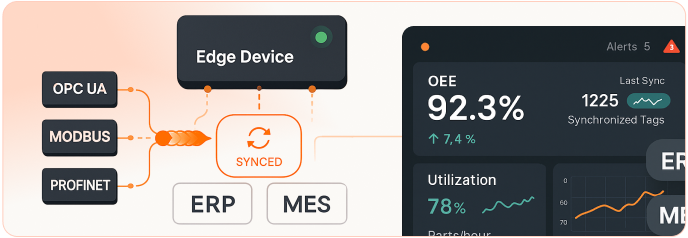 We integrate seamlessly with your PLCs, Robots, Sensors, and SCADA systems — no middleware, no complexity.